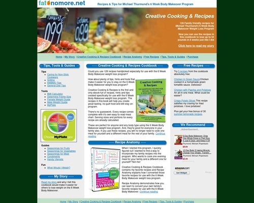 Creative Cooking & Recipes Cookbook contains my favorite recipes and Recipe Anatomy explains how I converted those favorite recipes for use with the 6 Week Body Makeover weight loss program.