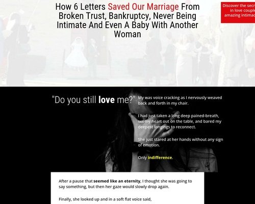 Discover the simple secret that transformed our broken marriage into that crazy in love couple who enjoys open communication, mutual respect, real friendship, and true intimacy. You will learn exactly how to apply the same secrets to your own marriage.